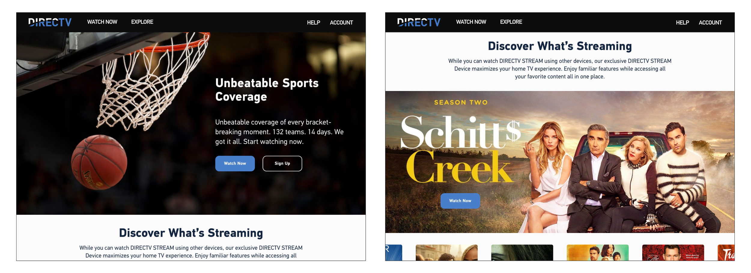 Following DirecTV’s split from AT&T, our team at Wongdoody was tasked with redefining the brand’s digital ecosystem across web and mobile. As UX Designer, I led the redesign of key experiences - watch, account, billing, and support - through a blue-sky, research-driven approach. The result was a streamlined, intuitive experience supported by a robust new design system that elevated usability, reduced support call volume, and helped reposition DirecTV as a modern, customer-centric entertainment platform.
