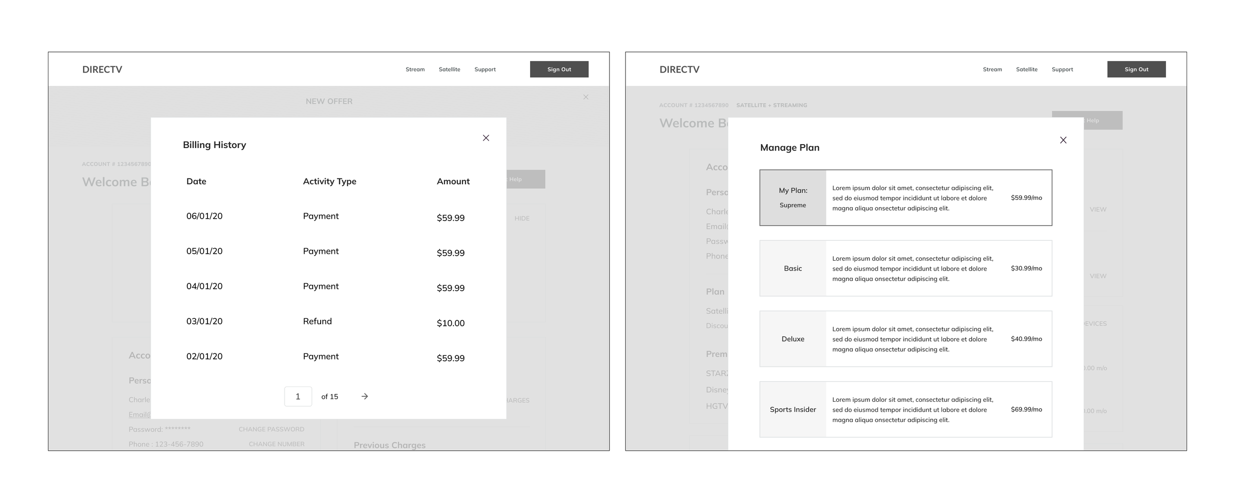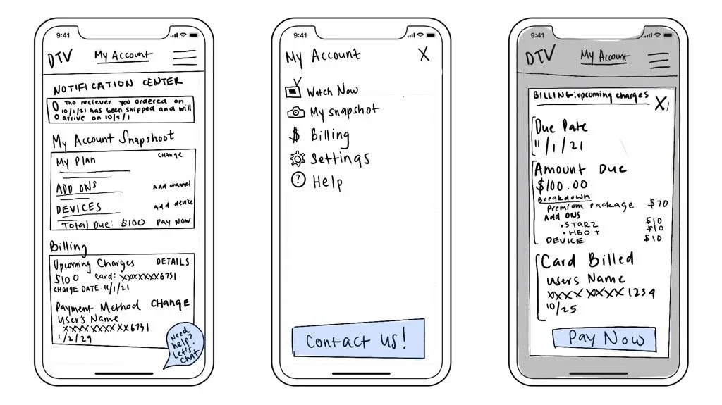 Before moving into wireframes, our team used rapid sketching sessions to quickly explore different approaches to account management and billing flows. Sketching allowed us to visualize concepts early, compare options side by side, and spark constructive discussions