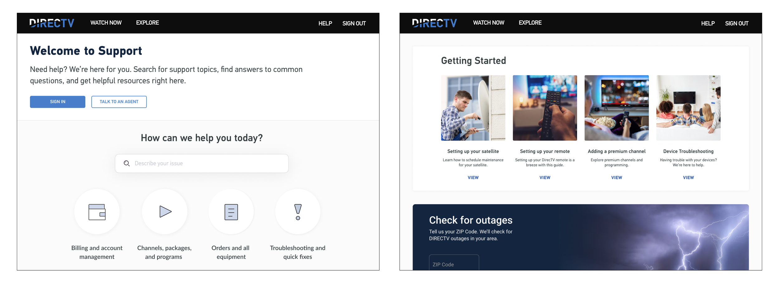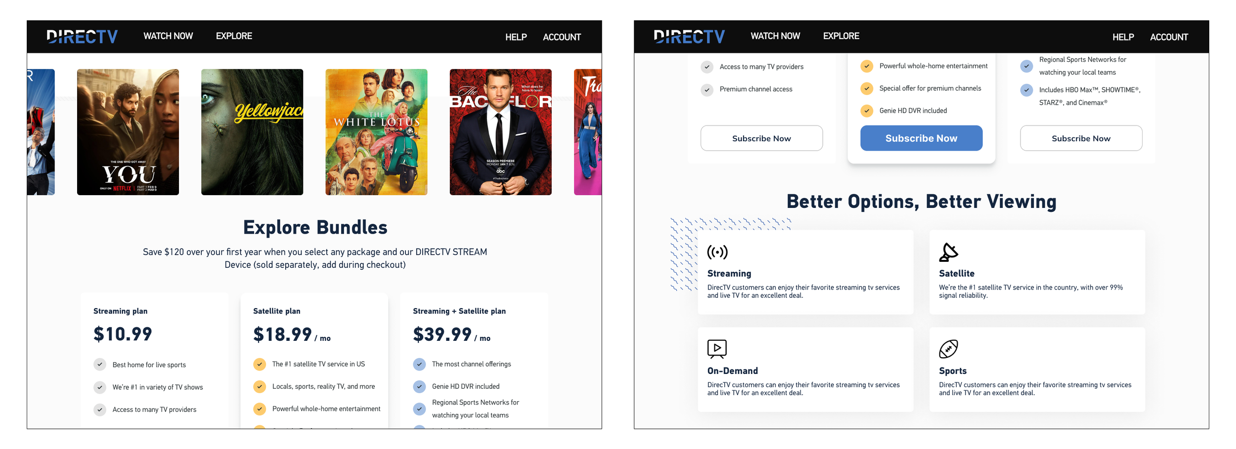 After separating from AT&T, DirecTV needed to modernize its digital identity and product experience to stay competitive in streaming. The mandate: reimagine the account, billing, and viewing experience to reduce support calls, improve customer retention, and strengthen brand loyalty.